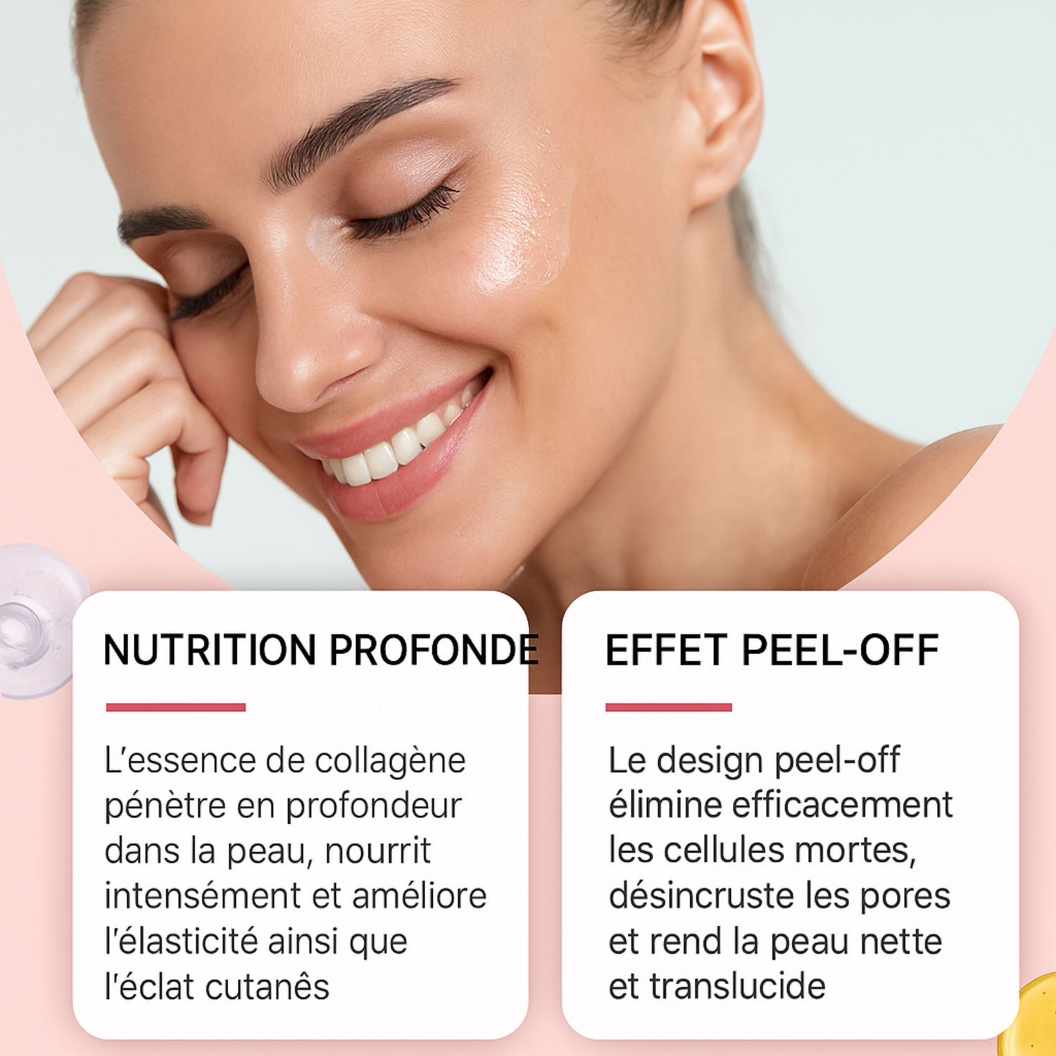 Pour l’effet peel-off, laissez poser 20–30 minutes puis retirez doucement. Il peut aussi être utilisé en masque de nuit sans rinçage.